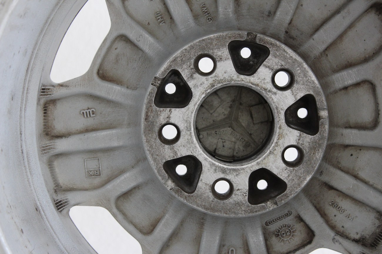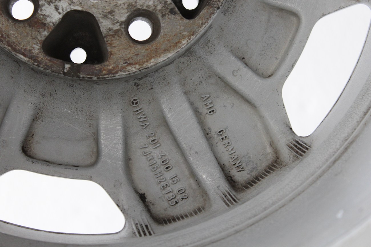 These genuine 15″ AMG Aero I wheels measure 7 inches wide at all four corners and were originally manufactured in Germany by O.Z. Racing for use on pre-merger W201 AMG models. This set is being relisted due to a previous non-paying bidder on The MB Market; that buyer has been banned, and the buyer’s fee was not refunded.