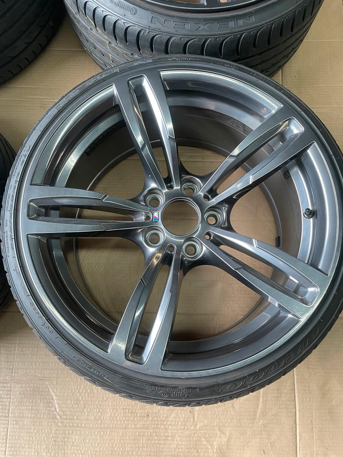 A full set of genuine BMW M Styling 437 double-spoke alloy wheels in 19 inches, suitable for multiple M-series platforms. The set includes mounted tires and is ideal as a replacement, upgrade, or spare set for track and road use.