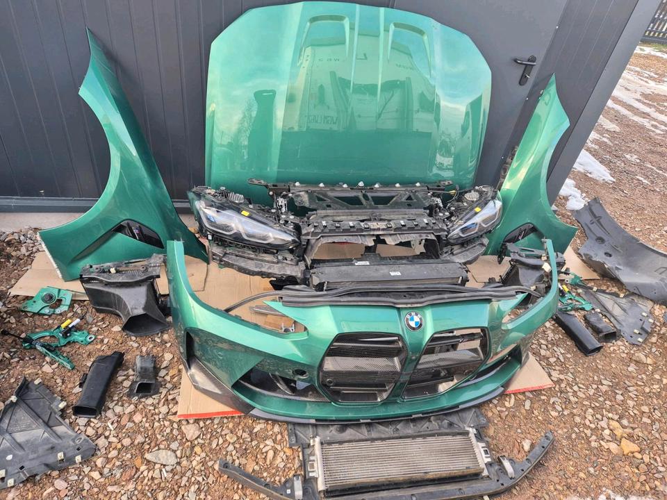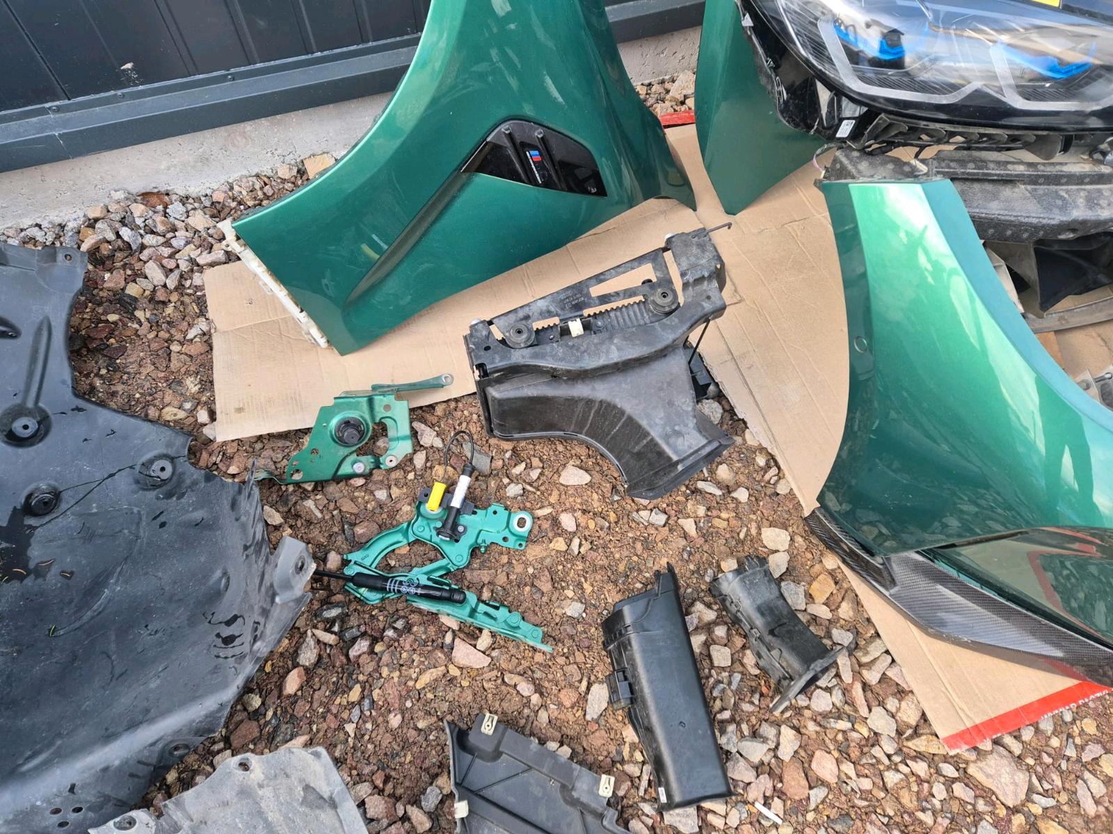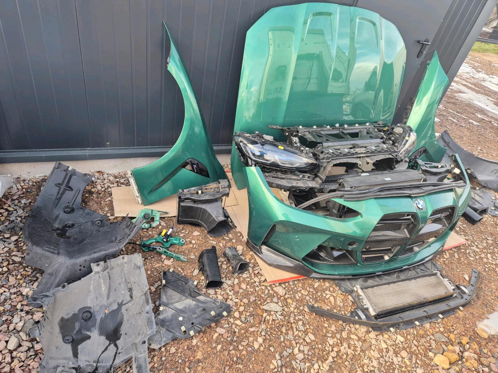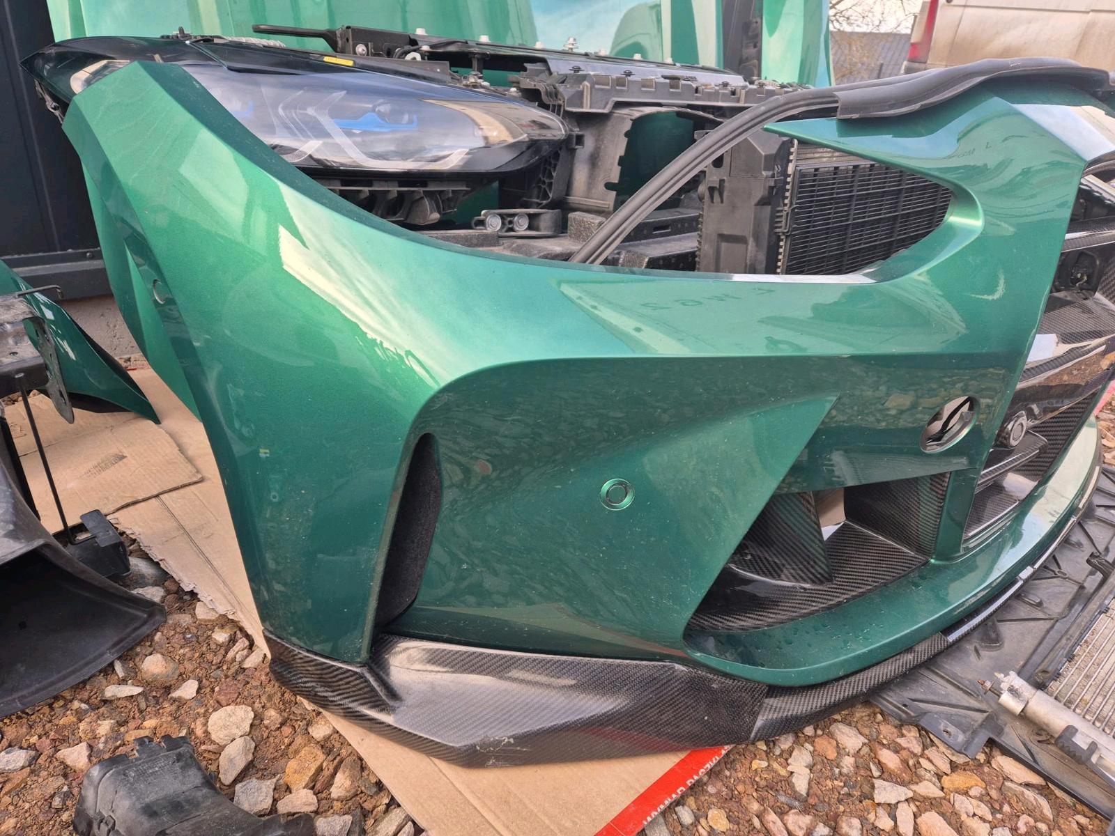 This is the ultimate front end package for the BMW G82 M4 Competition – a complete, color-matched “maximum front” harvested from a single vehicle in the stunning C4G Isle of Man Green Metallic. Every single front component is included, all in the same factory finish, requiring NO REPAINTING and ready for immediate installation. This is the definition of a complete, plug-and-play solution for the most demanding restoration, repair, or conversion project.