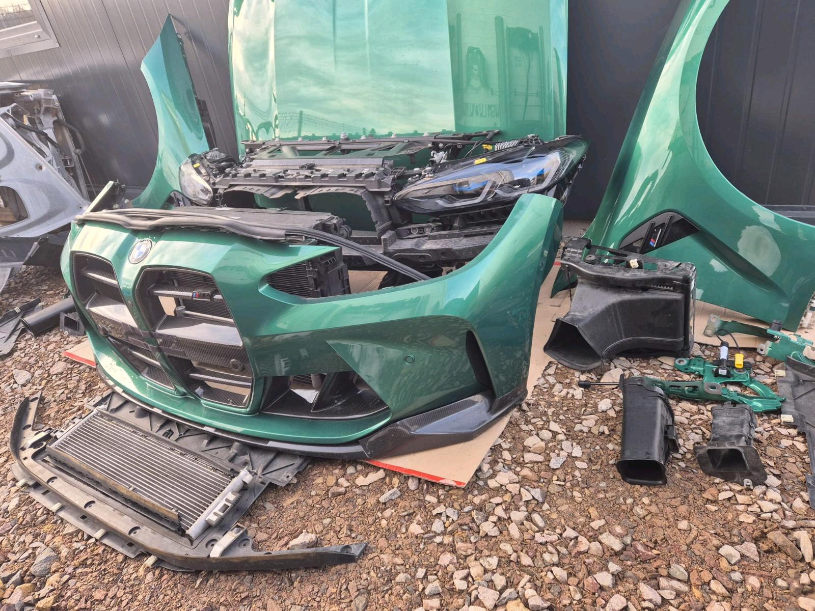 This BMW M4 G82 Competition front-end package is a complete OEM solution sourced from one single vehicle, painted in the exclusive C4G Isle of Man Green Metallic, and ready for immediate installation.