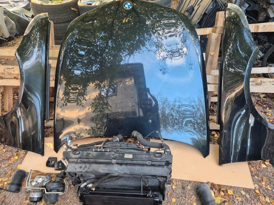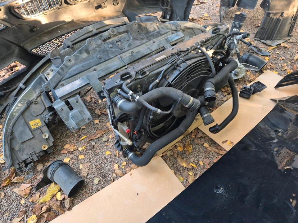 Each component is OEM (original BMW) and was removed as a matched set, so paint and fitment are uniform. Headlights are complete bi-xenon units with modules and control units. The bumper comes with parking sensors (PDC), air ducts and all mounting attachments. The lock carrier is supplied together with the radiator package, hoses and air-ducting, making this an ideal direct-swap front clip for repair or restoration projects.