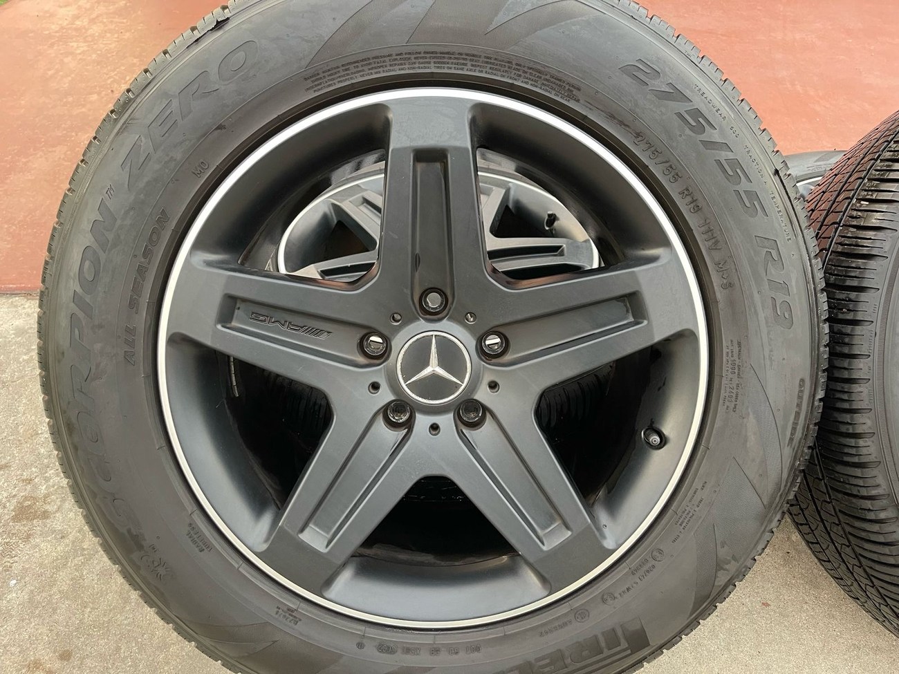 Factory 19″ AMG wheels with tires, designed specifically for the W463 Mercedes-Benz G-Class. Each wheel measures 19×9.5 ET50, finished in original matte black with factory AMG face engraving. Authentic Mercedes-Benz casting marks and the correct A463 401 21 02 part number are stamped on the back. The set includes Pirelli Scorpion Zero tires with 2023 date codes and OEM Mercedes-Benz center caps. Manufactured in Germany by Ronal, these wheels remain in original, unrefinished condition with no major blemishes.