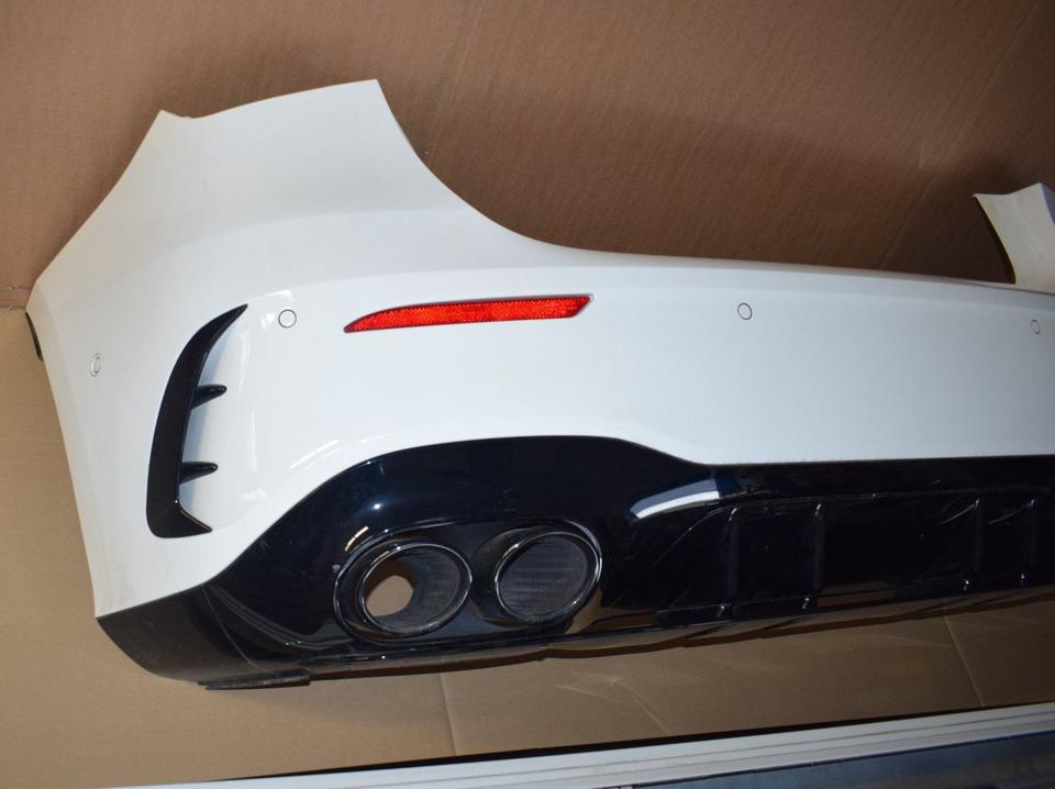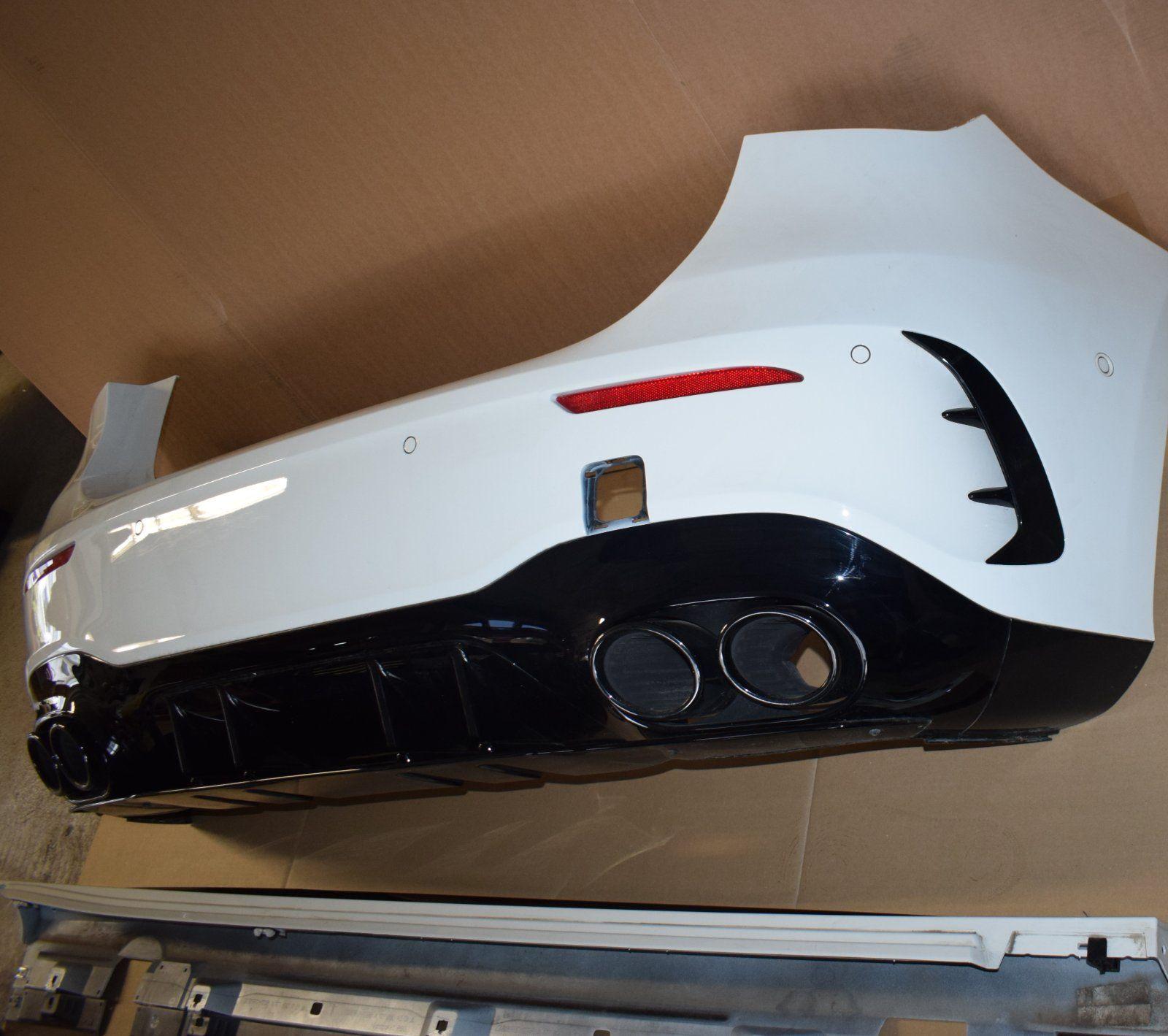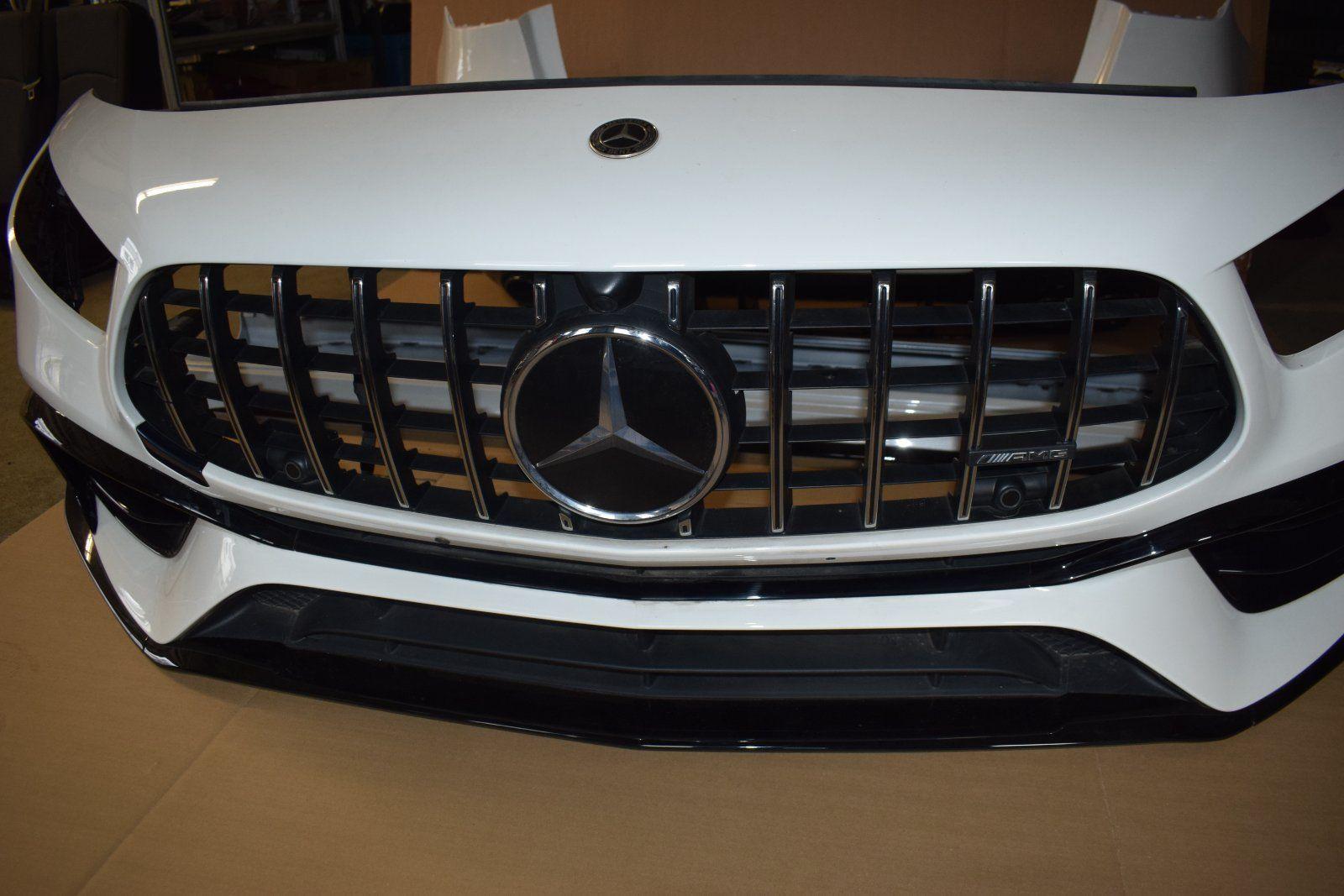 Upgrade or restore your Mercedes-AMG A45 S (W177) with this genuine Mercedes-Benz parts package: complete front bumper, complete rear bumper, and side skirts — all in Polar White (9149). This OEM body kit preserves factory styling and fitment while delivering the aggressive AMG look and aerodynamic function expected from the A45 S AMG Line.