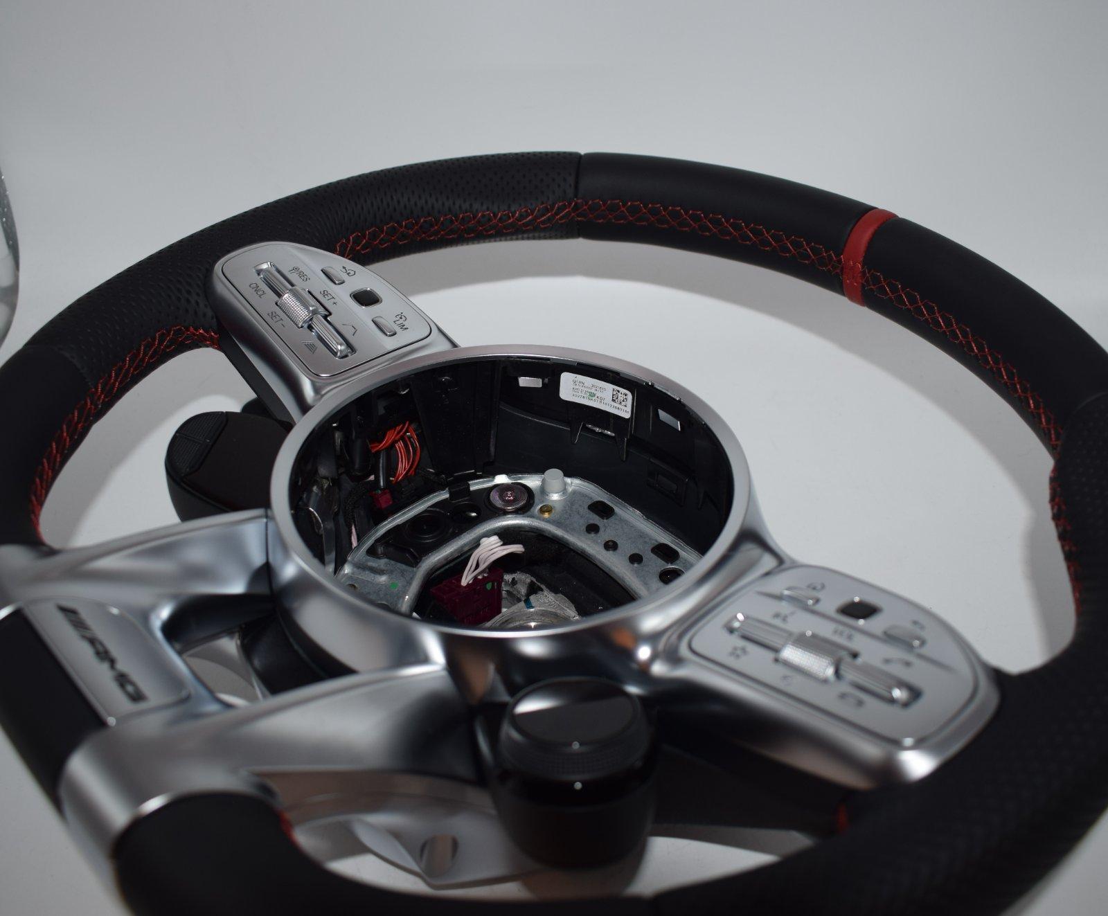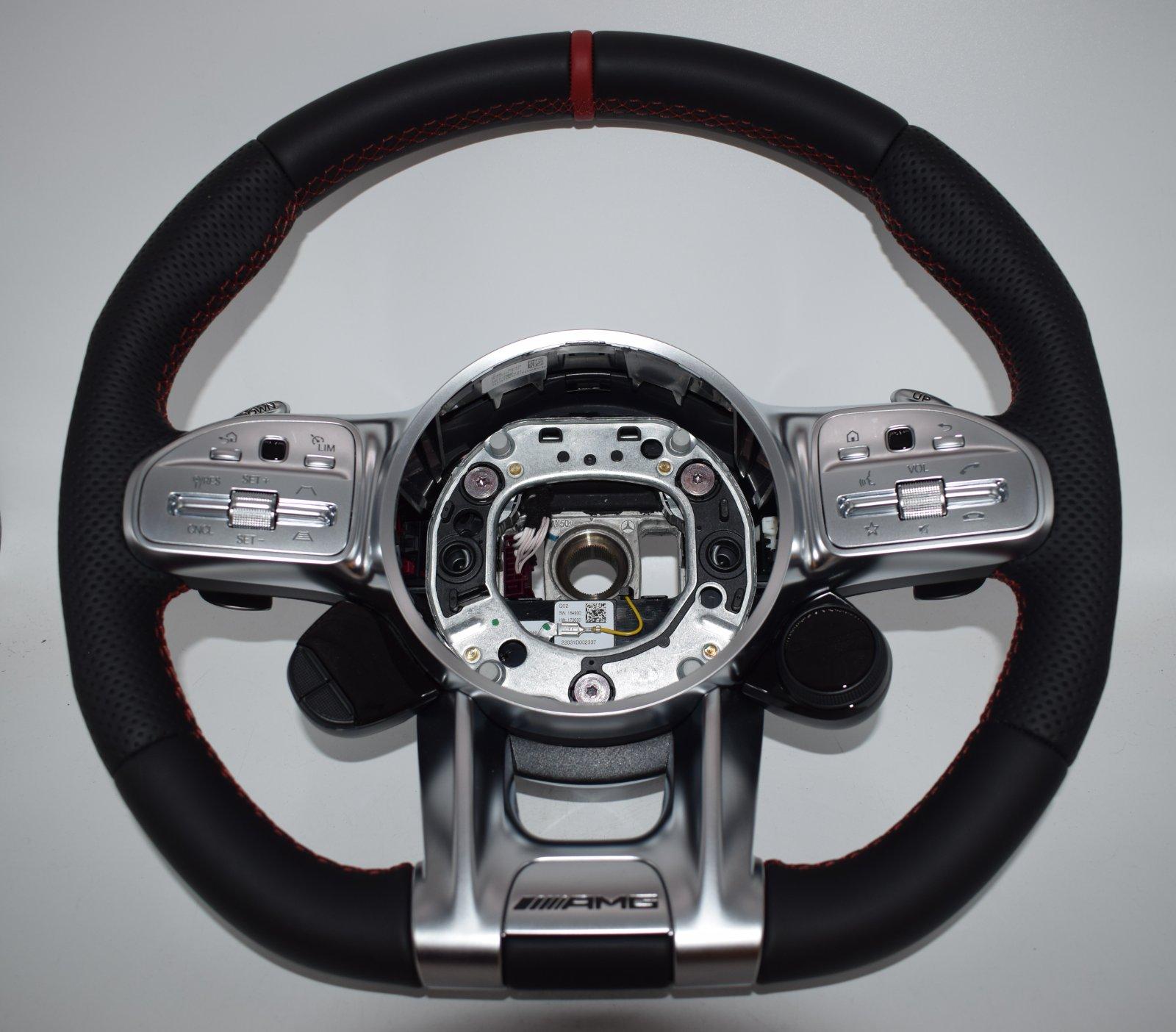 replacement, Mercedes AMG red leather steering wheel, Mercedes AMG wheel facelift, performance steering wheel Mercedes AMG
