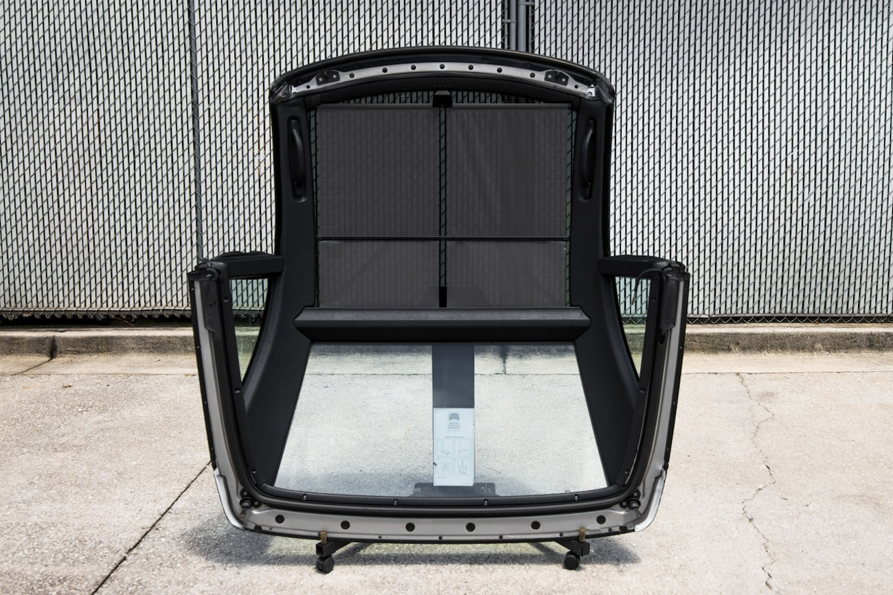 This R129 SL glass panoramic hardtop is highly sought after by enthusiasts and restorers due to its rarity and fully functional sunshade. Finding original tops with intact glass and working mechanisms can be difficult, making this piece a valuable addition for anyone restoring an R129 SL-Class.