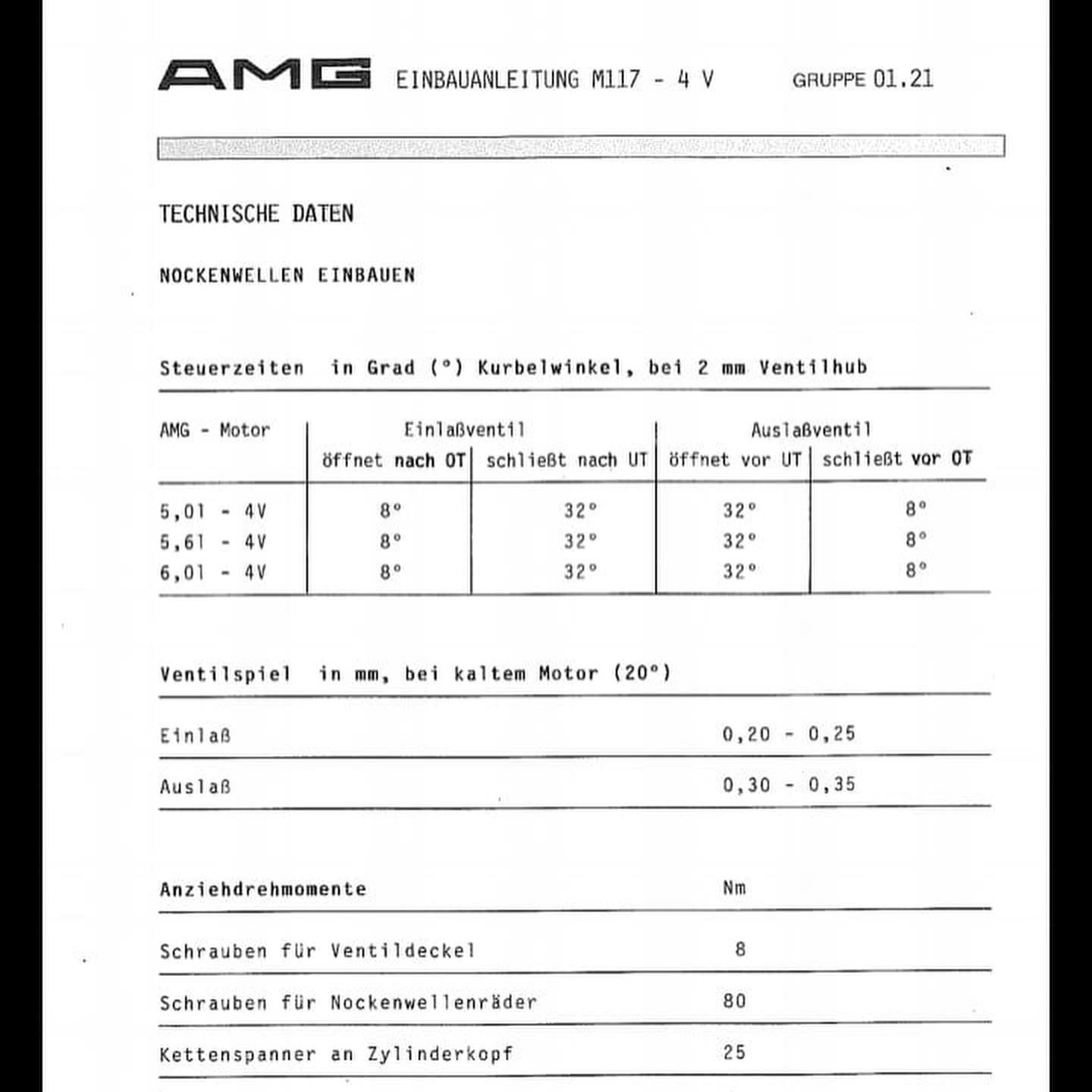 • Refurbished or new camshafts, solid lifters, and springs, specific to the 4-valve AMG heads