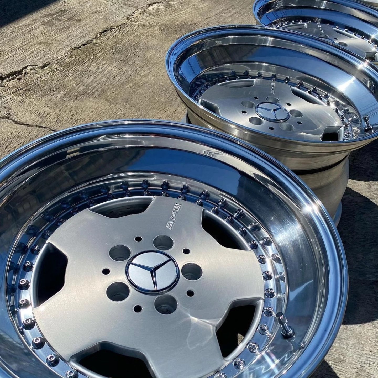 - Classic 5-spoke monoblock design (e.g., AMG Aero I or Pentas) with forged aluminum construction.