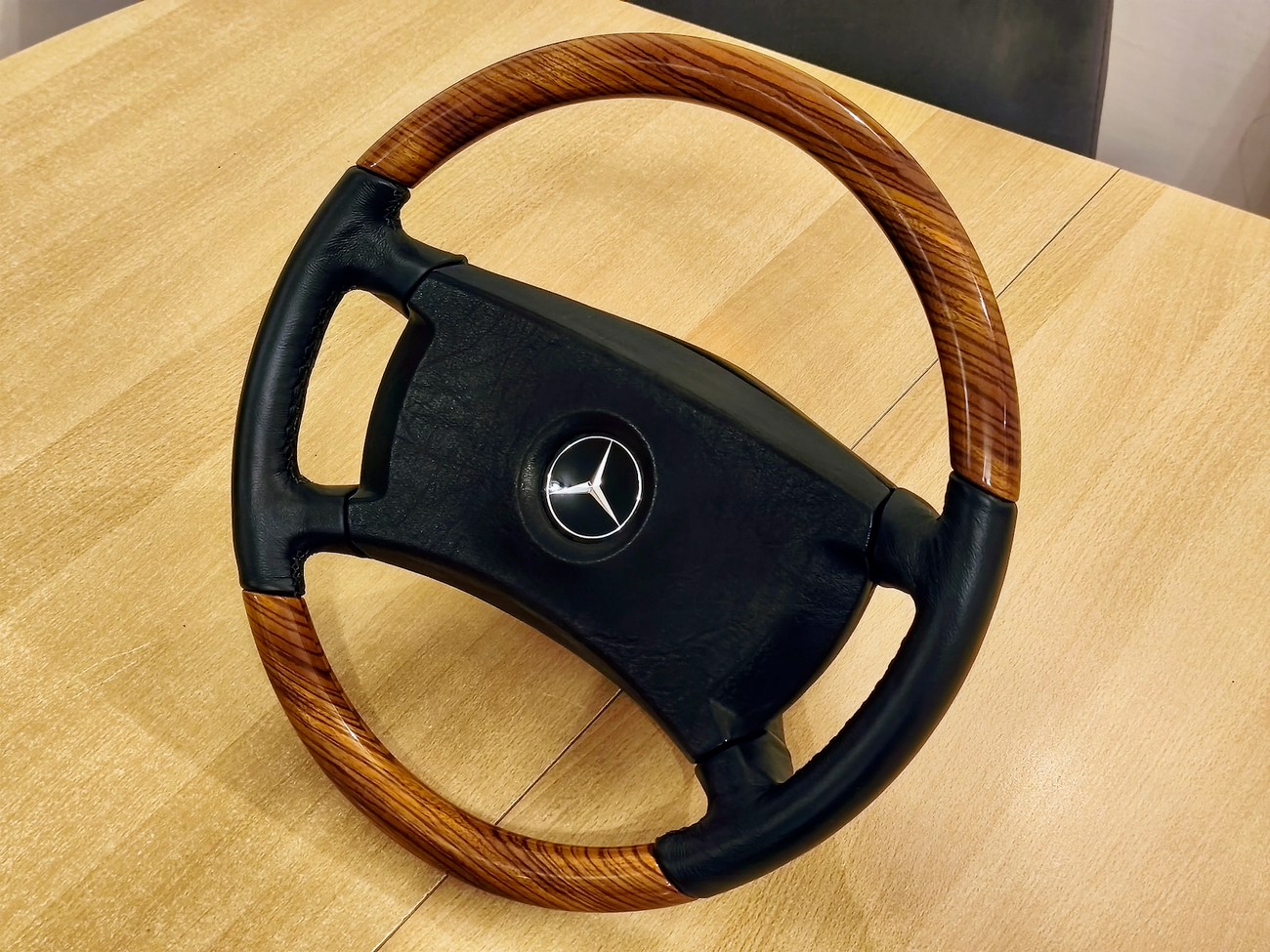 Petri W126 Zebrano Steering Wheel – Custom Mercedes-Benz OEM Wood & Leather Wheel